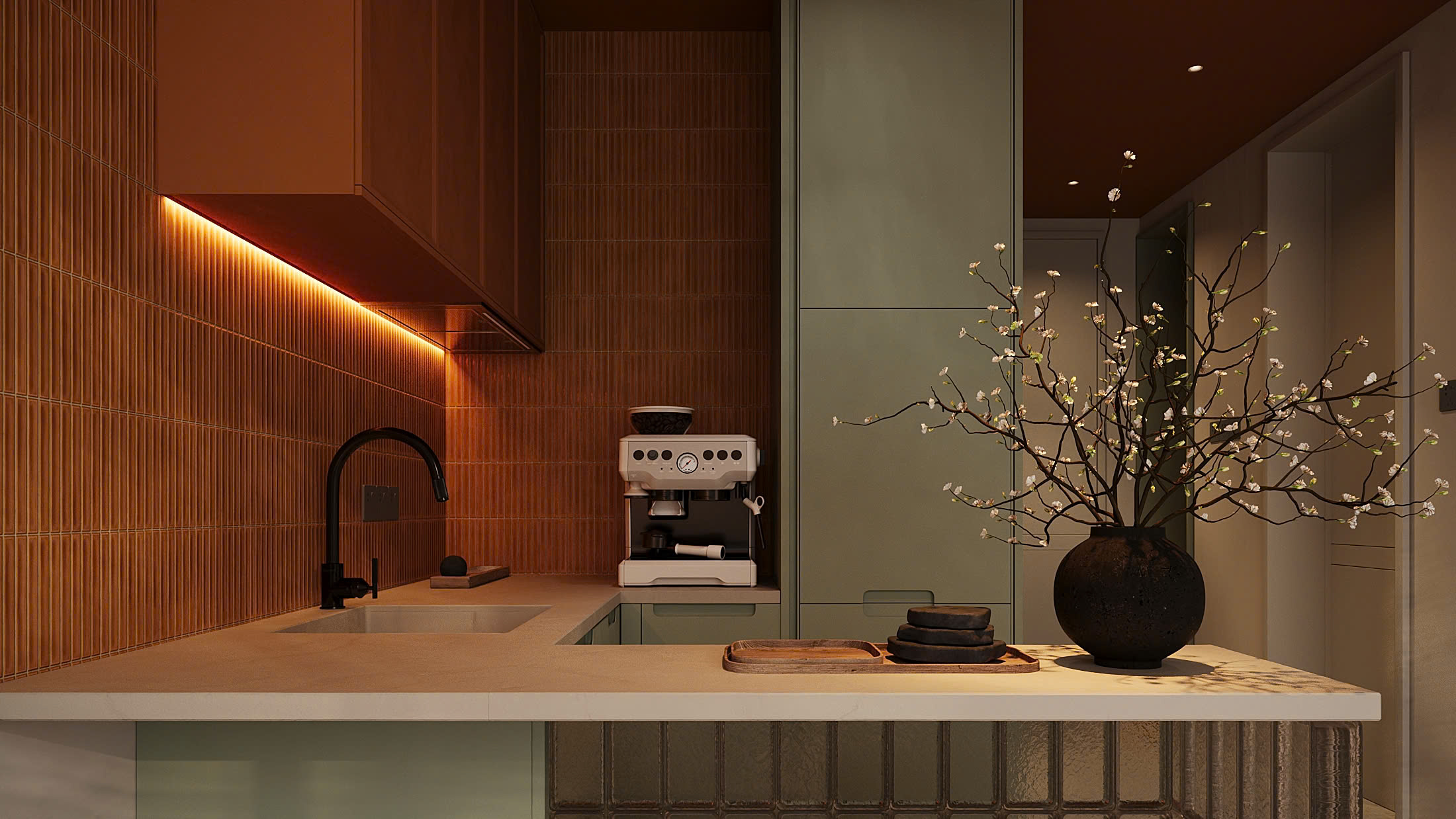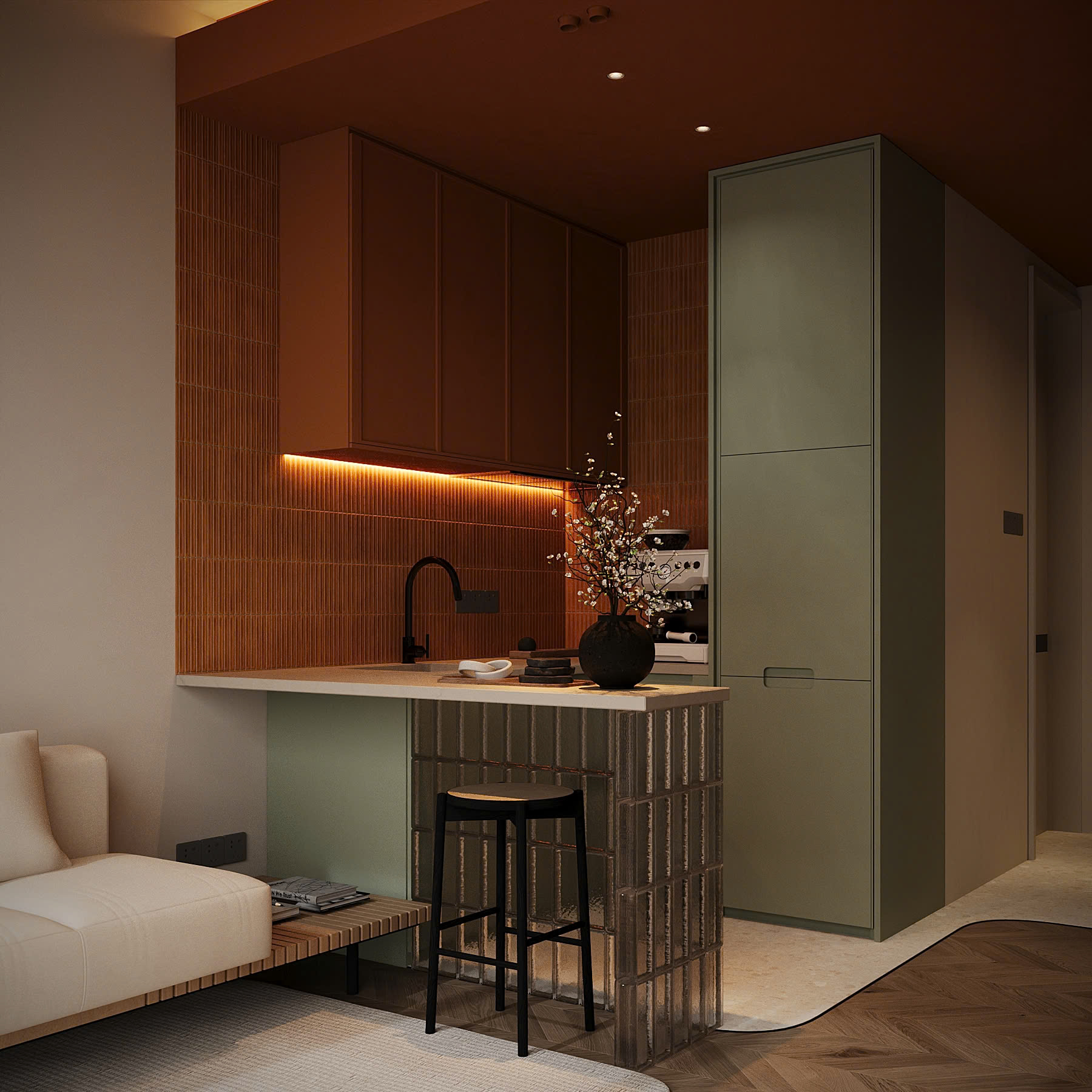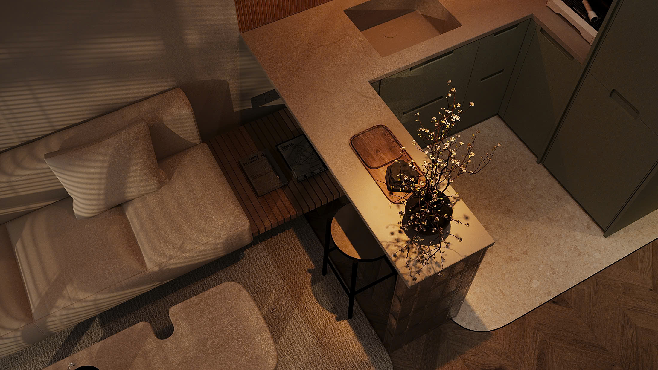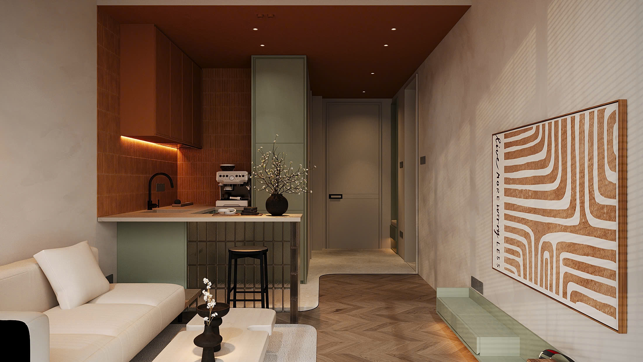 Công trình không cố “phô diễn”, không chạy theo những chi tiết cầu kỳ. Từng lớp vật liệu, ánh sáng và bố cục đều được tiết chế một cách thông minh để mở rộng cảm giác không gian, nhưng vẫn giữ lại trọn vẹn sự ấm áp đúng nghĩa.